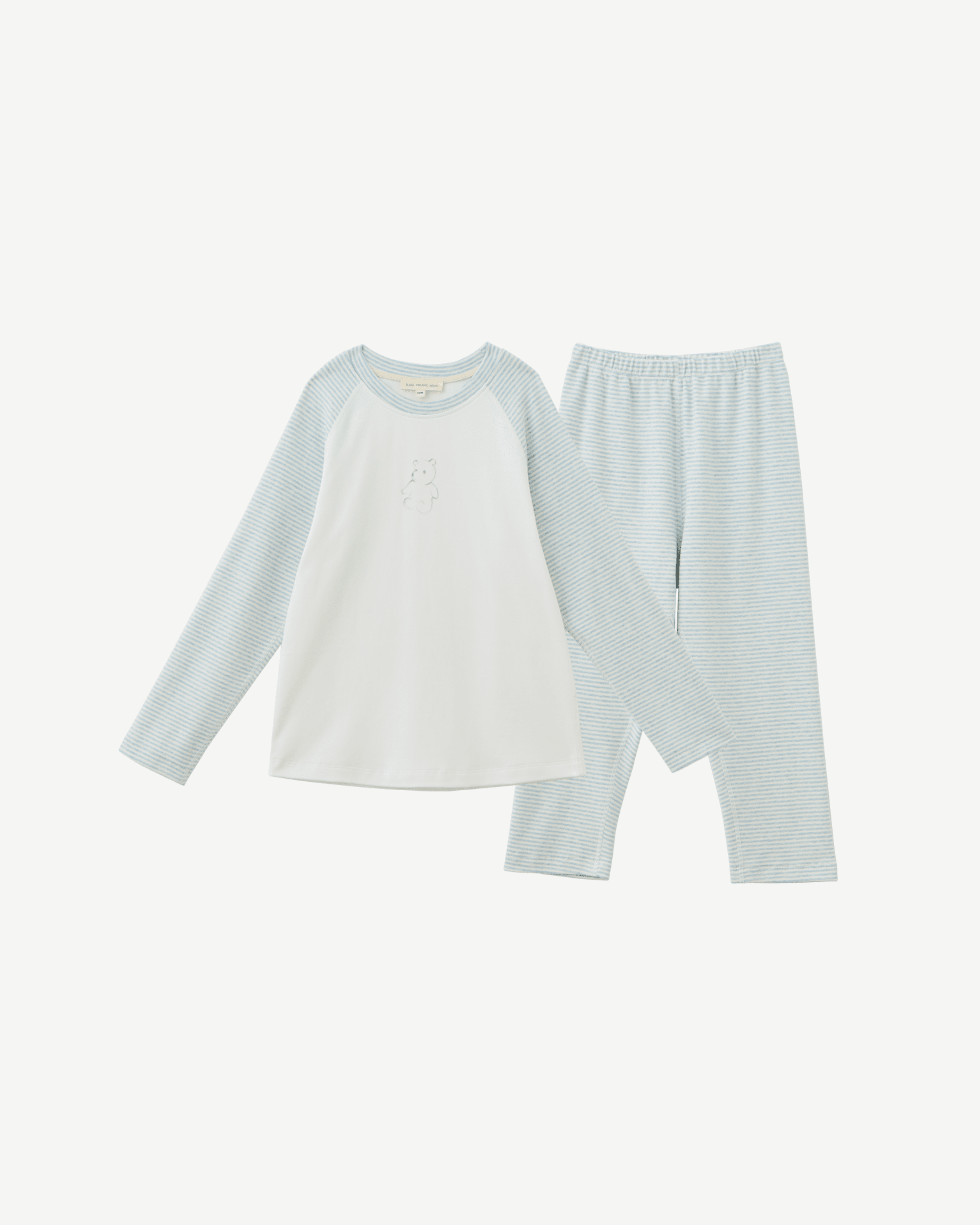 Blara Organic House • 2-pcs Round-neck Pajama Set 有机棉 植物染色 儿童 男童 女童 睡衣两件组 上衣 裤子 秋冬 蓝色条纹 小熊印花 1Y~8Y