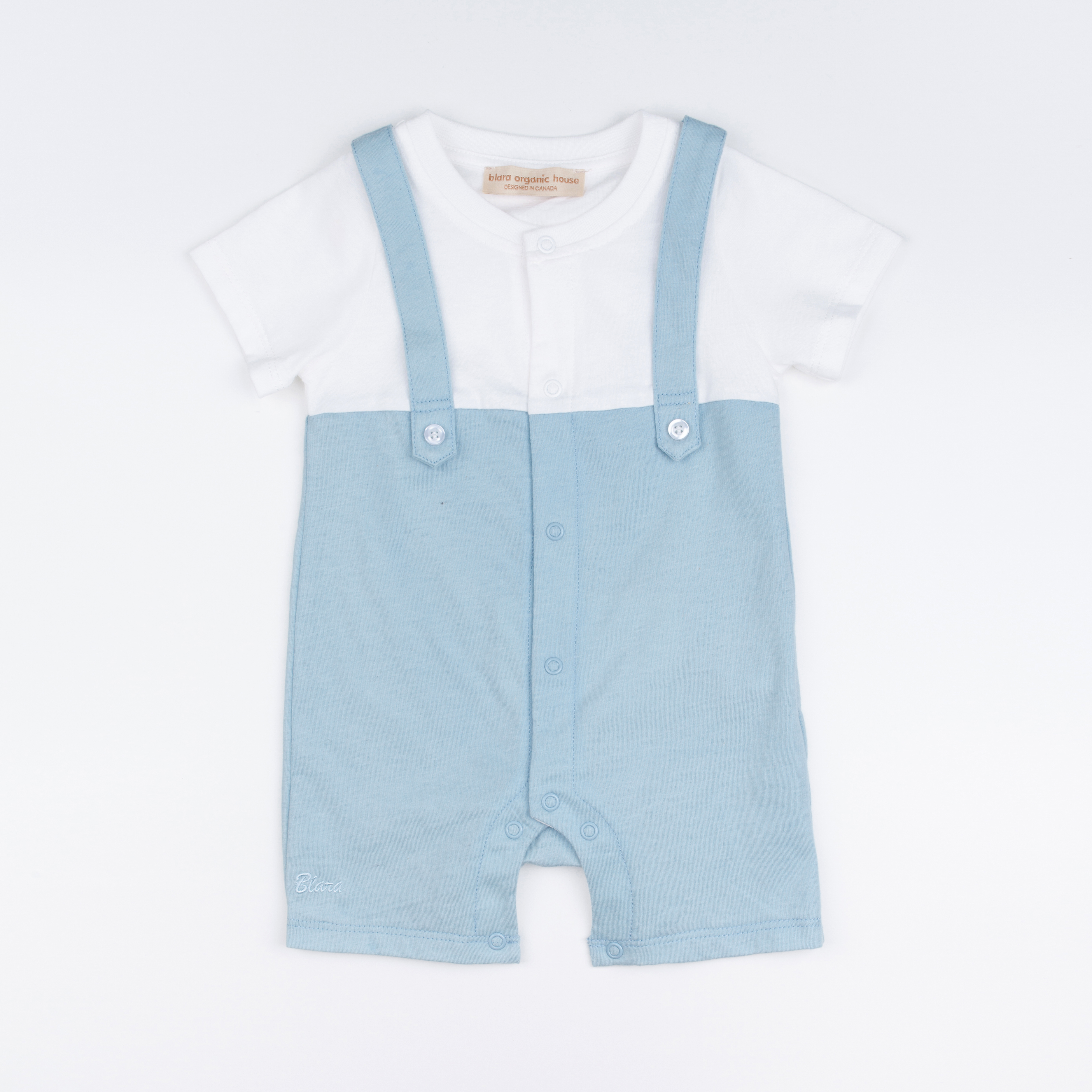 Blara Organic House • One-Piece Bib Romper 有机棉新生儿小月龄 男童 吊带绅士风格连体衣 连身裤衣 一件式 春夏 天空蓝 1M~9M