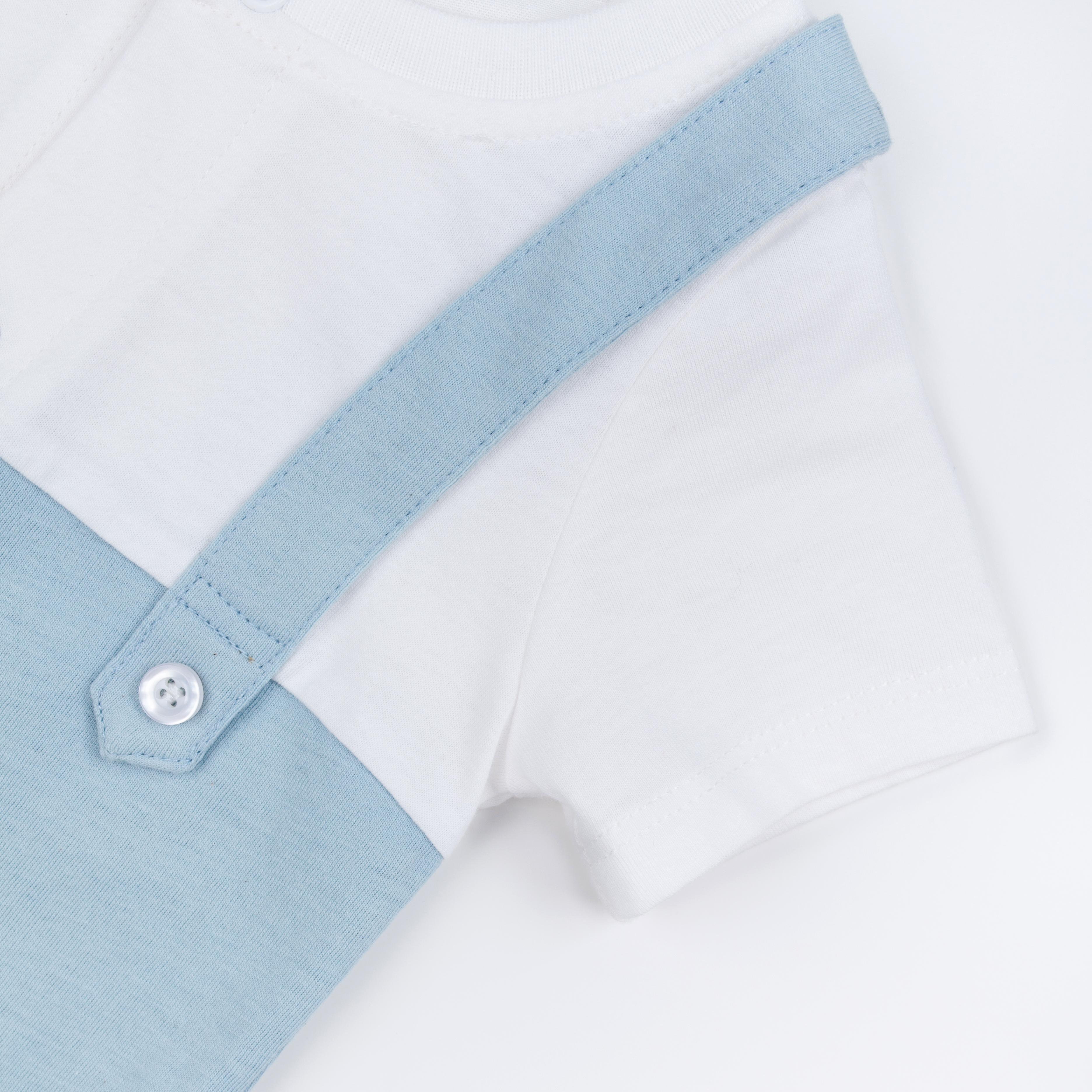 The style of bib pants of this romper is classic. This is a cute piece and can makes your boy looks like a little gentleman. The colour of sky blue is a bright and popular colour in summer.